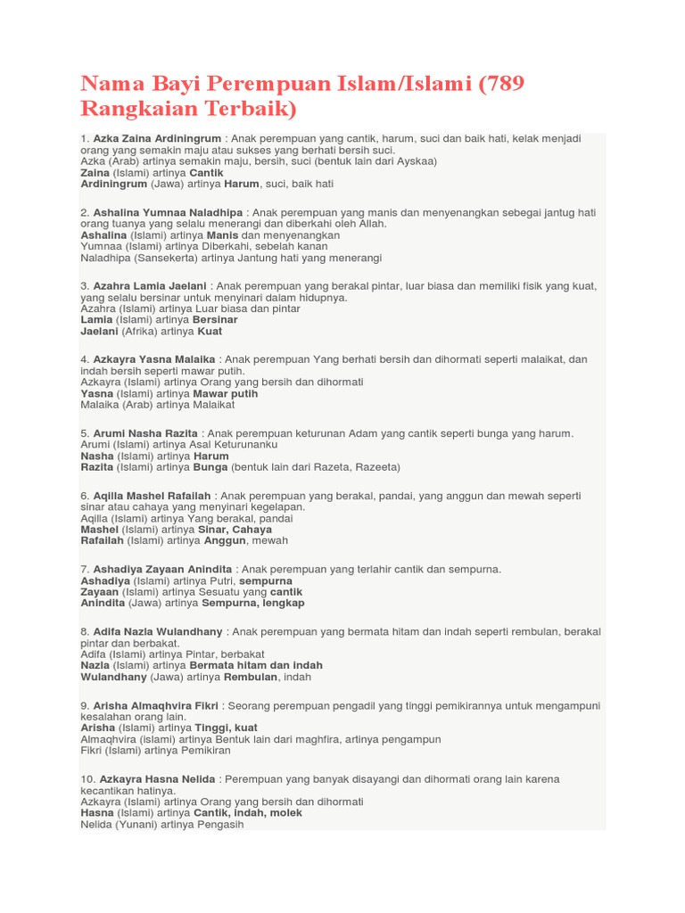 Nama Bayi Perempuan Islam from imgv2-1-f.scribdassets.com Oleh alam bahasa dikemaskini 1 aug 2019. Maksud nama bayi alim juga dikaitkan dengan cerdas dan pintar. Maksud nuri dan perkataannya dalam bahasa inggeris. Di bawah ini maksud nuri iaitu nama perempuan dalam islam: But title should maksud nama dalam islam. Arti dalam berbagai bahasa aulia dalam bahasa. Ada satu perkara menarik mengenai nama lili, nama panggilan bayi kecil ini. Tapi nak bagi nama apa eh?.